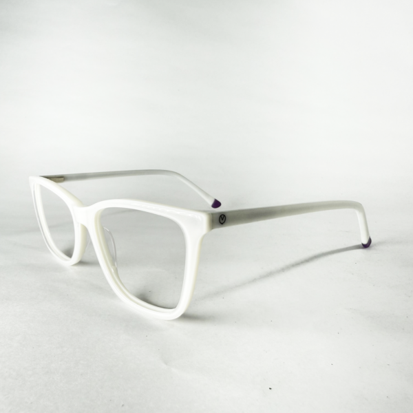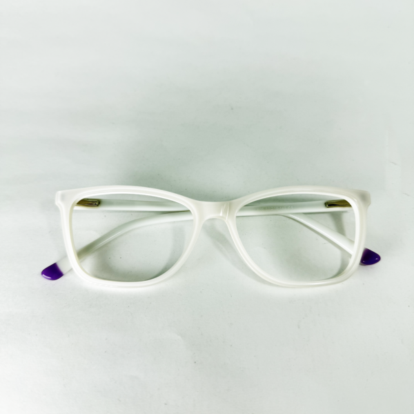 Cor: branco com detalhe roxo nas hastes